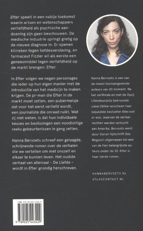 Extra informatie:Efter speelt in een nabije toekomst waarin artsen en wetenschappers de liefde als psychische aandoening zijn gaan beschouwen. De medische industrie springt gretig op de nieuwe diagnose in. Er openen klinieken tegen liefdesverslaving. En farmaceut Fizzler wil als eerste een geneesmiddel tegen verliefdheid op de markt brengen: Efter.